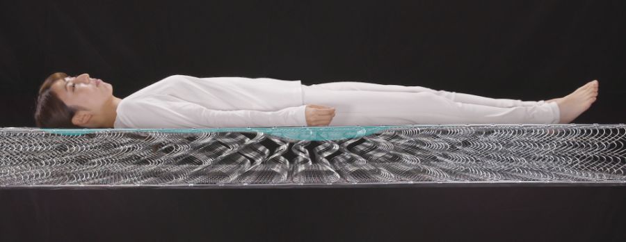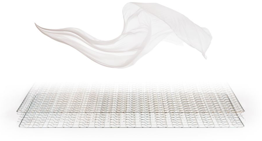 特殊素材の反発力で寝姿勢をサポート ポリエステル三次元スプリング構造体が、高い弾力性で寝姿