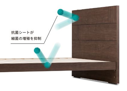 ベッドフレーム(LTベッドシステム)のヘッドボード、サイドフレーム、フットボードに抗菌シートを採用。細菌からのリスクを低減します。